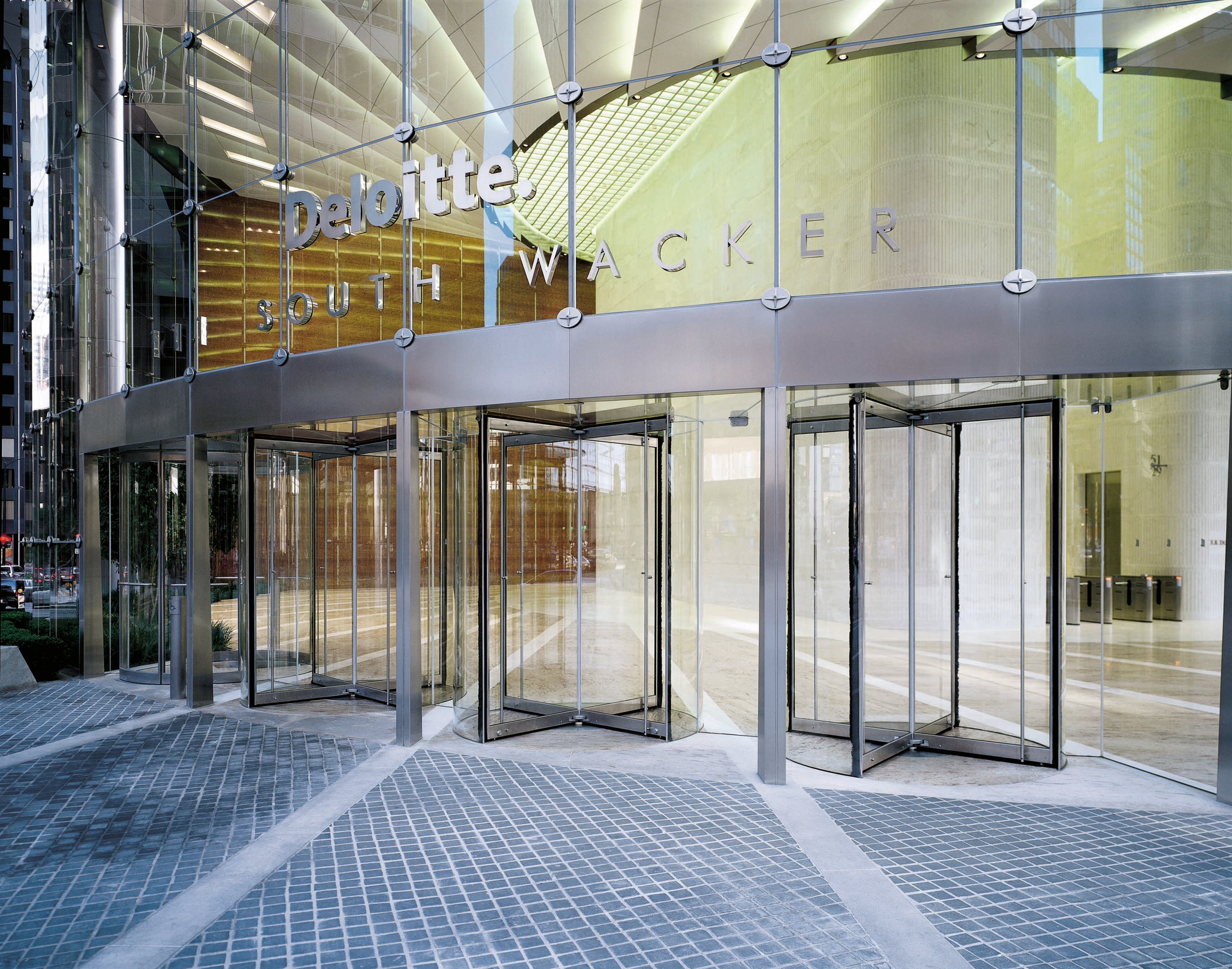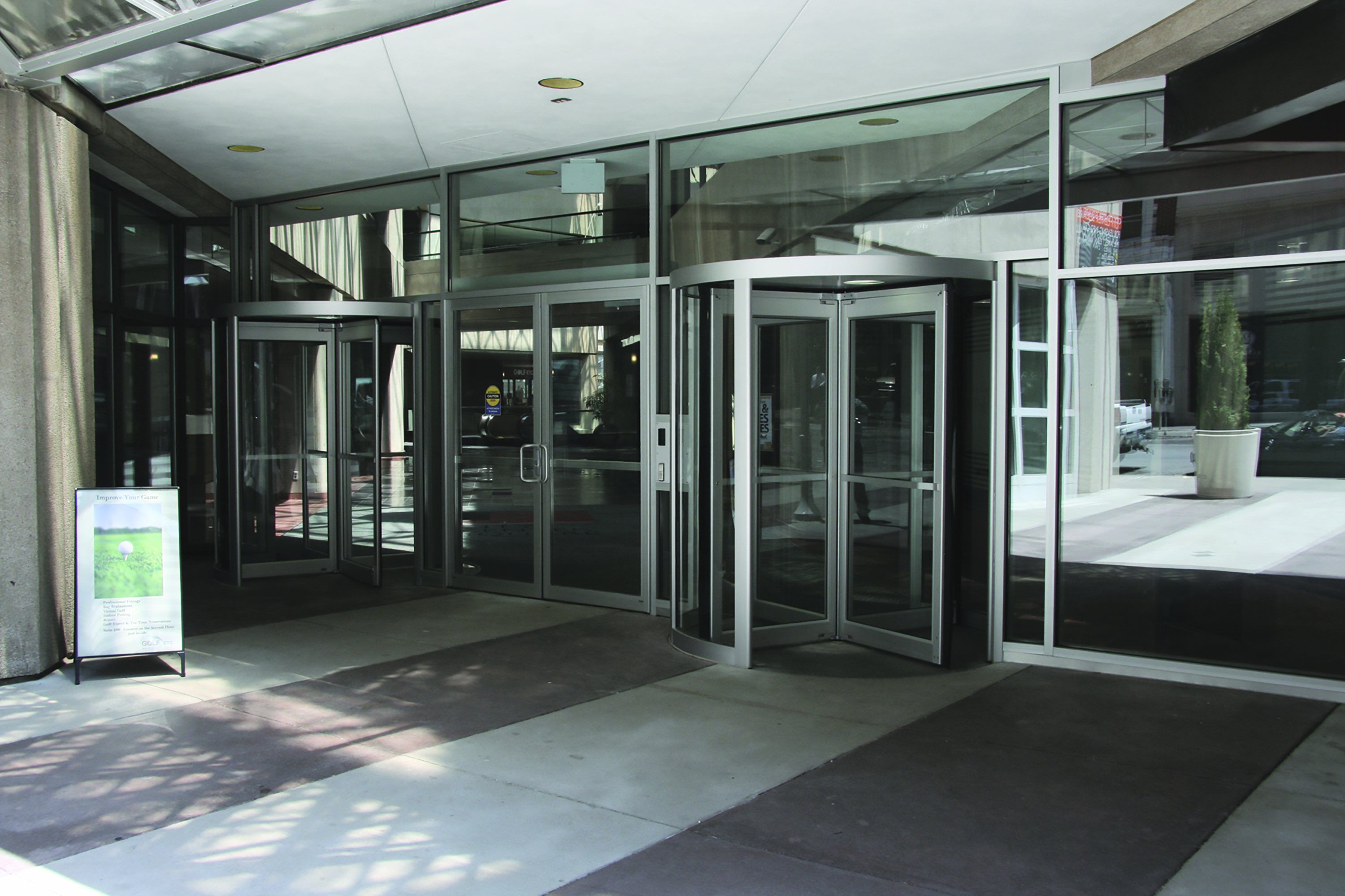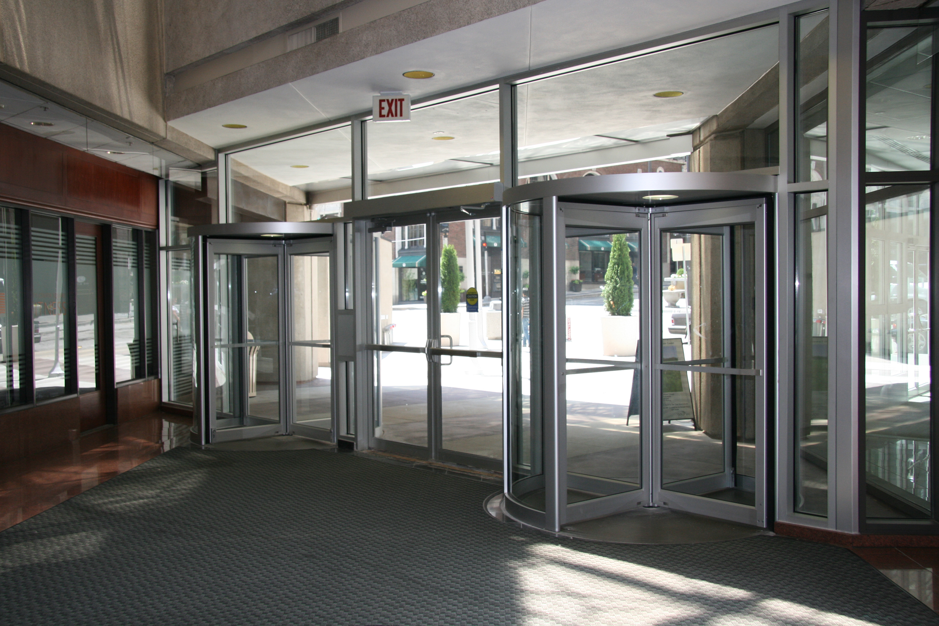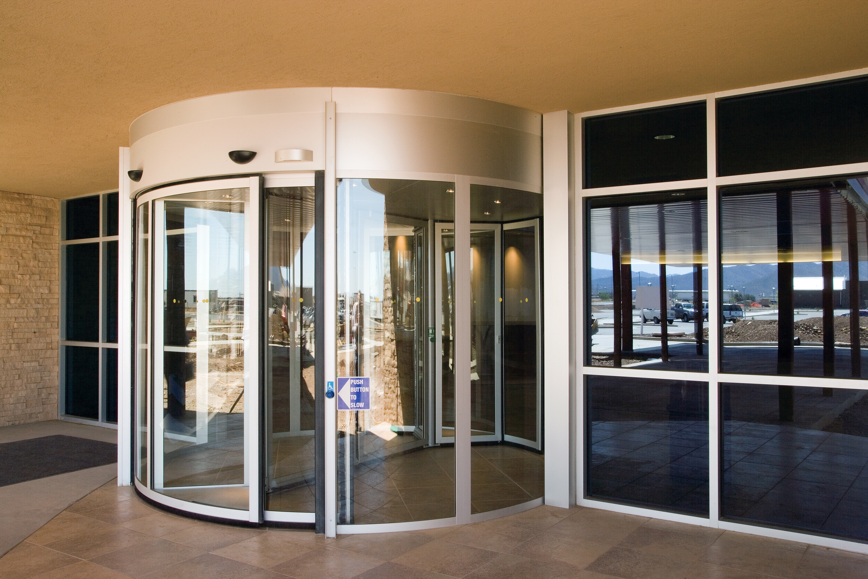 Revolving doors are available in hundreds of configurations to meet virtually any application. Customers choose the glass, metal, and finish as well as design, size, accessories, and attachment plan. The revolving door provides the elegance and clean styling of glass and metal to create a grand first impression to a building entrance. More and more storefronts and building enclosures are using structural glass fades. In such applications, the entrance system should not only conform to, but also reinforce the rich styling and sleek lines of the all glass design.