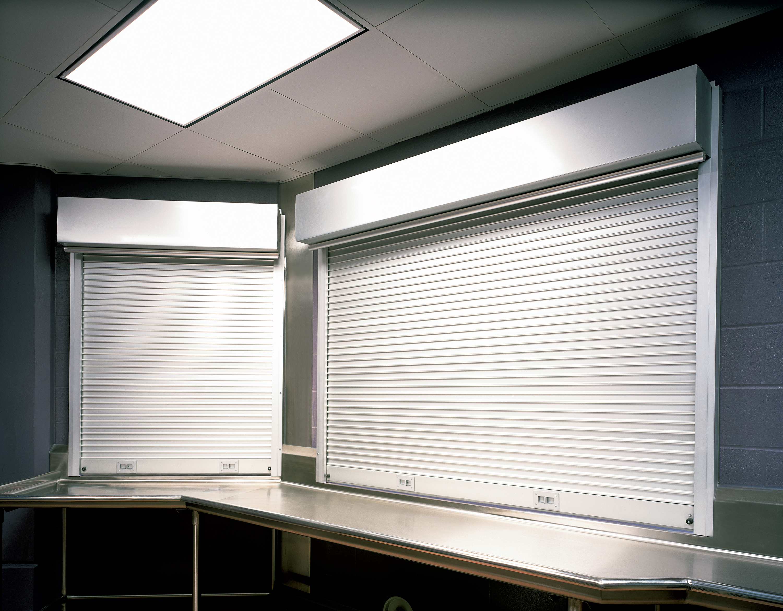 - Integral frame and sill counter doors in sizes up to 124″ wide and 6′ high (3759 mm and 1828 mm)