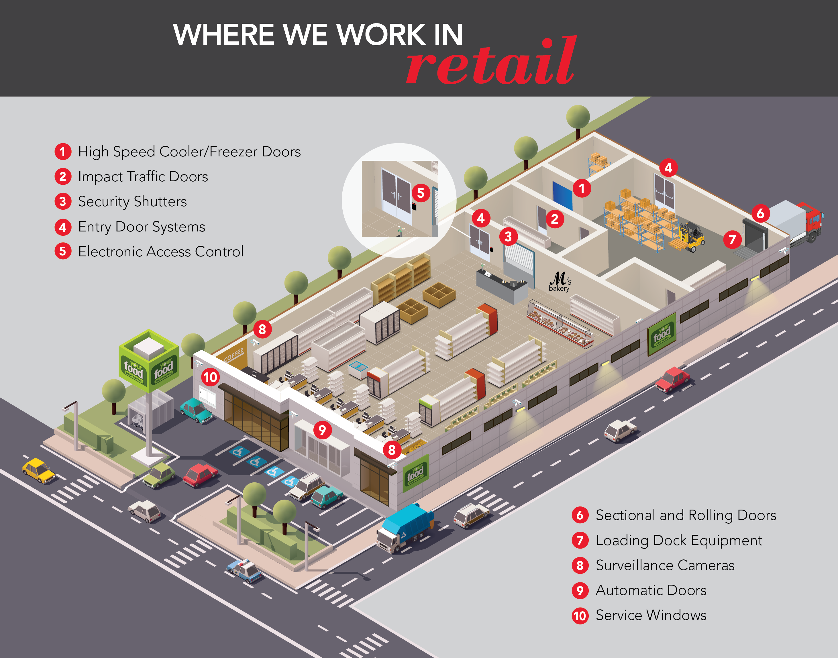 From the front of the house to receiving and inventory, it’s critical to have safely operating openings. Consult with DH Pace experts to mitigate potential safety concerns for both customers and staff and provide asset protection at the same time.